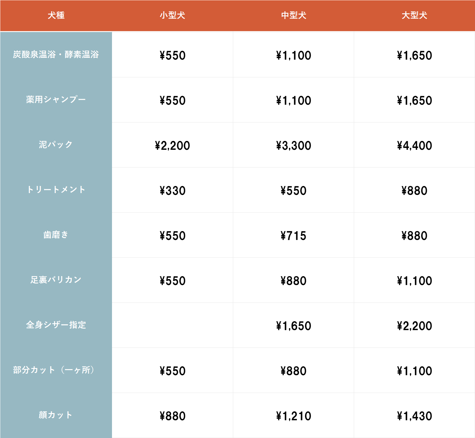 ※記載のない犬種はお問合せください